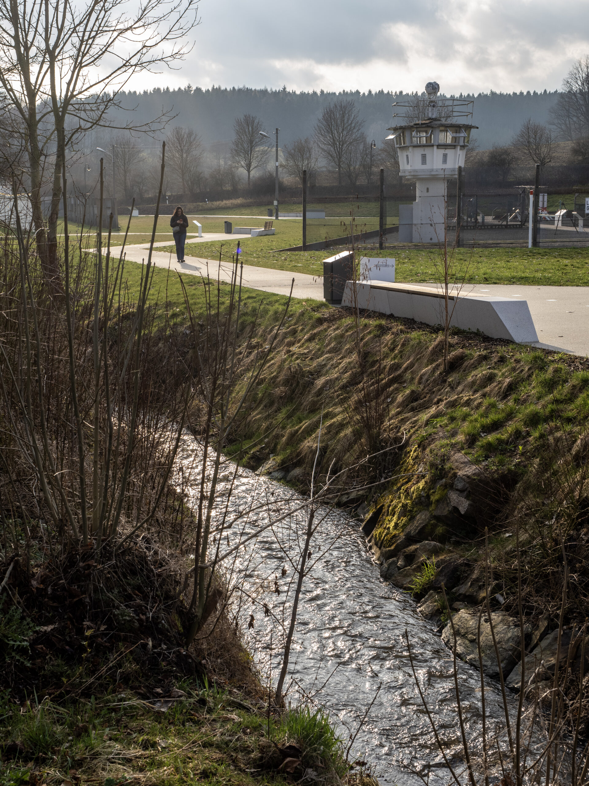 – Den markerer grenselinjen mellom Bayern og Thüringen, et faktum som landsbyens innbyggere aldri har brydd seg om i nevneverdig grad. Riktignok tilhørte vi forskjellige administrasjoner, men i praksis var det uten betydning. Det vil si, det var uten betydning helt frem til den dagen Muren ble bygget…