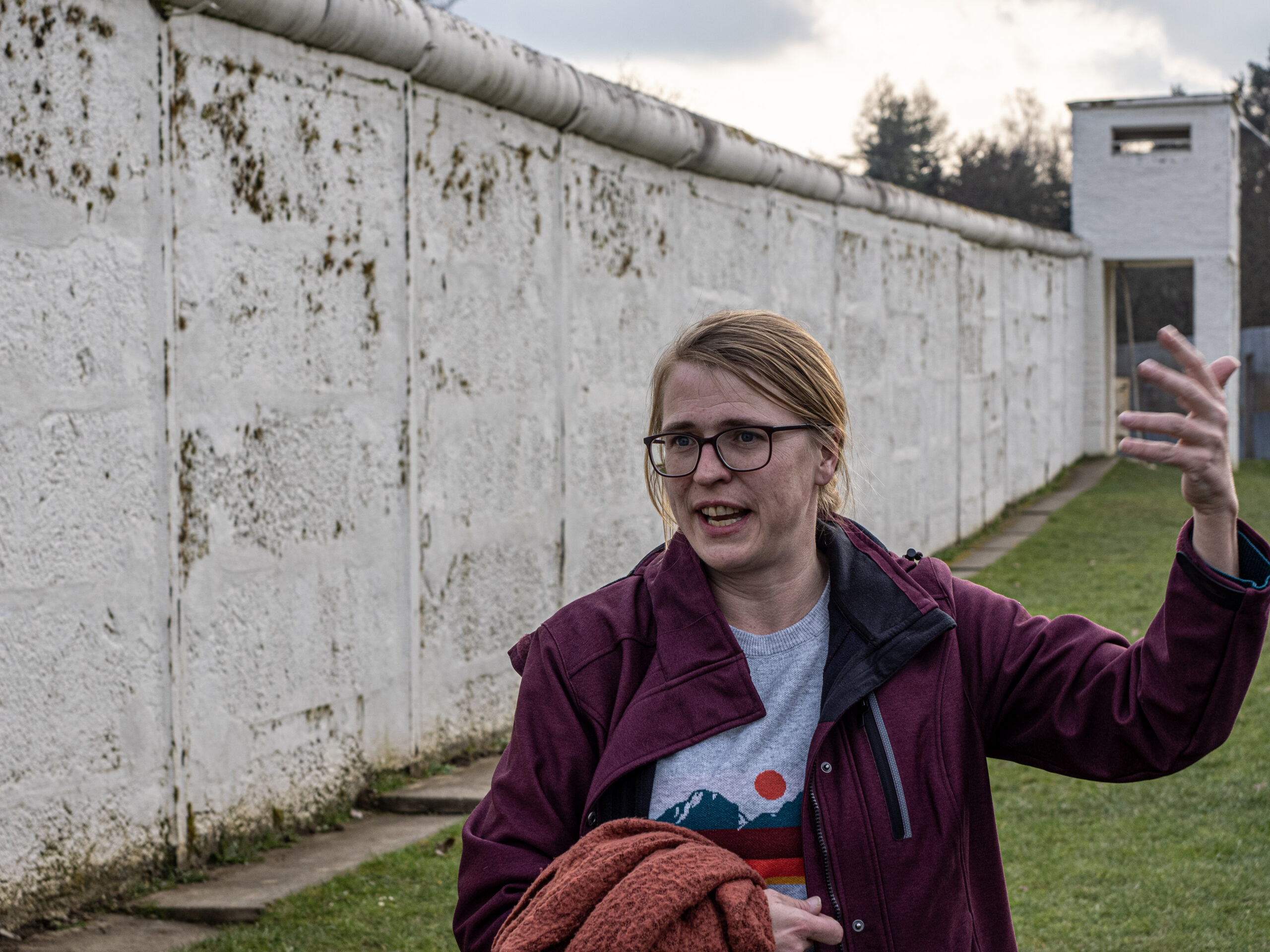 – Som i Berlin ble det også bygget sperringer her. Først i form av piggtrådgjerder og andre sperringer, men etter et par fluktforsøk kom det ganske raskt også opp en mur, bevoktet av vakttårn på øst-tysk side, forteller Susan.