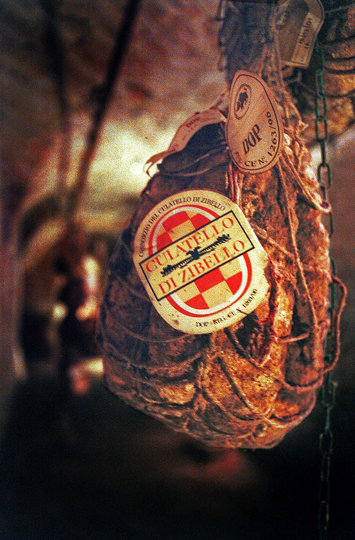 Akkurat som Parmigiano-Reggiano har Emilia Romagna-regionen også en gammel tradisjon for svin, og det er et imponerende utvalg av typer tilgjengelig, fra Mortadella di Bologna (salami laget av hakket svin, fett og svart pepper), Prosciutto di Parma (lufttørket, saltet skinke) og Culatello di Zibello, en ganske spesiell delikatesse som må skjæres tynnere enn papir. Denne myke, søte, delikate biten skinke, som betyr «liten rumpe» på italiensk, produseres på en landstripe ved bredden av elven Po nær Parma, som gir akkurat de rette fuktige forholdene for culatello til å modnes.