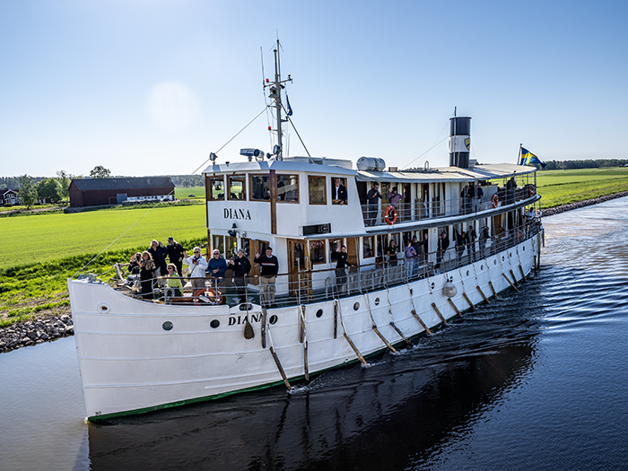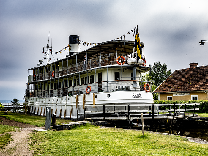 Og hun er et vakkert skue, den 150 år gamle jubilerende skjønnheten, der hun gjør en flørtende piruett i havnebassenget før hun legger til kai. Nok en gang har hun krysset Sverige på tvers. Og jeg har et diplom, signert av selveste kaptein Pierre, som bekrefter at sannelig – det har jeg også!