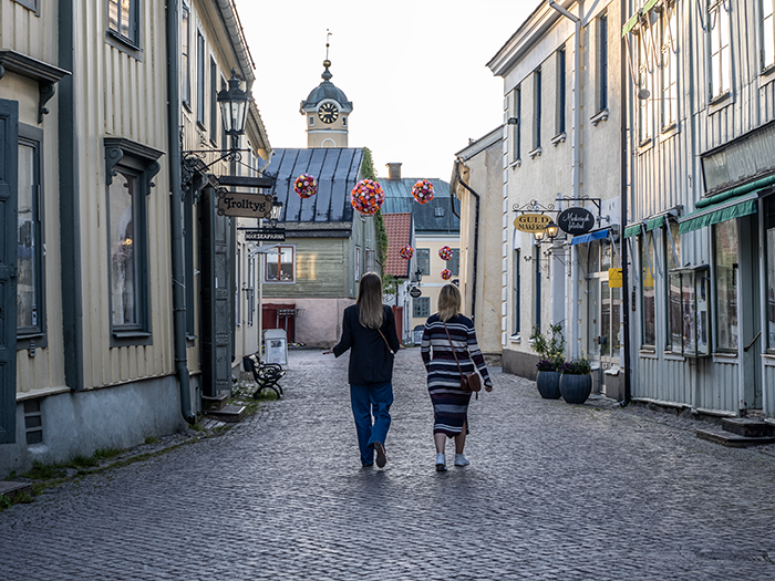 Den idylliske småbyen (bildene under) ble grunnlagt på 1200-tallet, og var gjennom Middelalderen en av Sveriges viktigste havnebyer. Her ble konger og dronninger kronet, og riksmøter avholdt. I dag er storhetstiden for lengst forbi, og tilbake finner vi en vakker og fredelig liten perle ved bredden av kanalen. Vi får et par timer i land, nok til å beundre blomsterprakten på torget og rusle en tur i de brosteinslagte gatene.