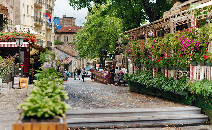 Fra Kalemegdan er det bare en kort spasertur til Knez Mihaila-gaten, den livlige handlegaten som går gjennom hjertet av byen. Denne brede gågaten kombinerer shopping, arkitektur og kultur, flankert av 1800-tallspaléer som i dag huser butikker, gallerier og kaféer. For en norsk besøkende føles atmosfæren overraskende livlig og nesten middelhavsk – med åpne terrasser, gateartister og summende samtaler som fortsetter til langt på kveld. Gaten knytter mange av byens severdigheter sammen, men er også et mål i seg selv – et sted som lever hele døgnet.