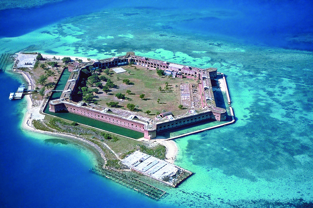 For alle som er interessert i historie er et besøk til nasjonalparken med den historiske 1800-tallsfestningen Fort Jefferson et must. Parken, som for det meste består av vann og syv små øyer, ligger cirka 110 kilometer fra Key West. Omgivelsene er eventyrlig vakre med himmelblått vann, flere korallrev synlige fra overflaten og mye liv i havet. Her er også store flokker trekk- og tropiske fugler. En 45 minutter lang guidet omvisning på festningen vil gi deg bakgrunnskunnskap før du spaserer rundt på egen hånd og beundrer utsikten, korallrevene og dyrelivet i havet. Ta med badetøy! Det er egne områder hvor snorkeling og bading er lov. Det går ferje mellom Key West og Dry Tortugas National Park.