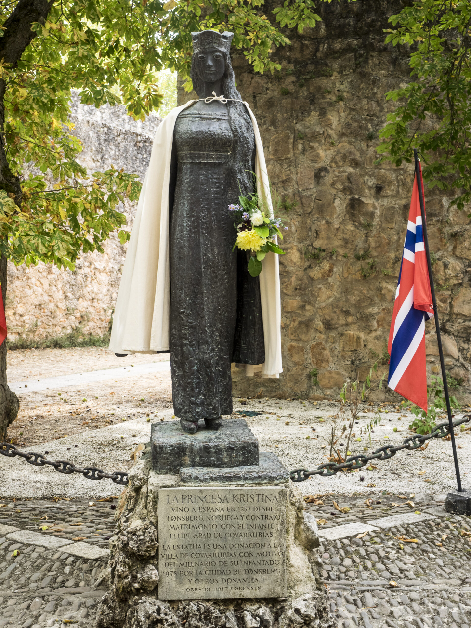 Idet vi ankommer gjennom de smale gatene og ut på Covarrubias torg møtes vi av salgsboder der det tilbys produkter fra Norge – alt fra geitost til bøker av norske forfattere, oversatt til spansk. Overalt henger norske og spanske flagg, symboler på vennskap og forbrødring mellom to folk. Så er da også nettopp Kristinas fødeby Tønsberg og Covarrubias vennskapsbyer, og som vi snart skal oppdage foregår det en utstrakt kulturell utveksling mellom Norge og Spania her i lille Covarrubias.