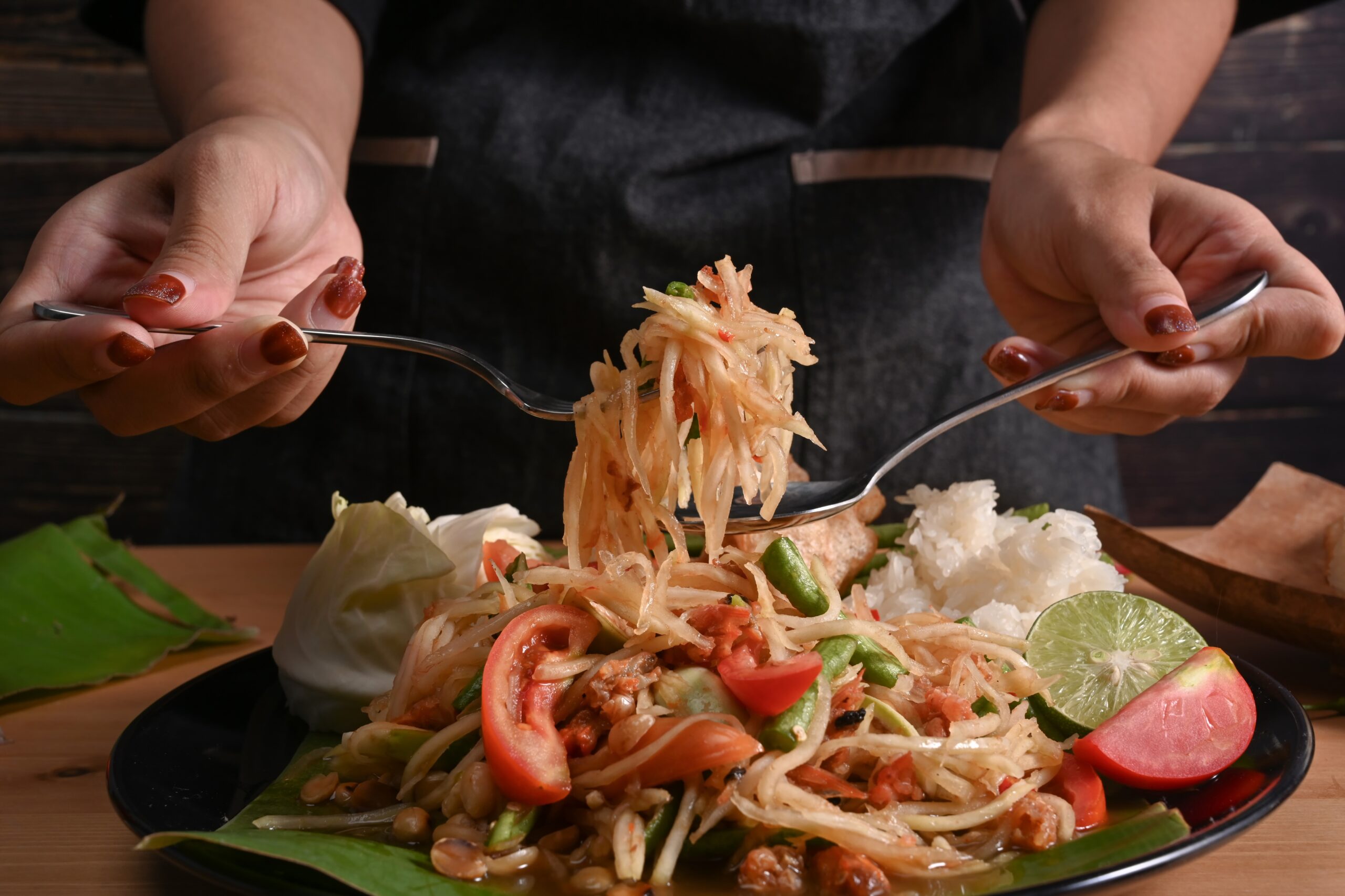 Hvis du vil spise deg til velvære, finnes det få bedre reisemål enn Thailand. Landet har en matkultur der friske råvarer spiller hovedrollen. Urter som galangal og sitrongress brukes fordi de både smaker godt og gjør godt. Grønnsaker, fisk og frukt står sterkt på bordet. Krydder løfter sansene og bidrar til at du føler deg våken og opplagt.