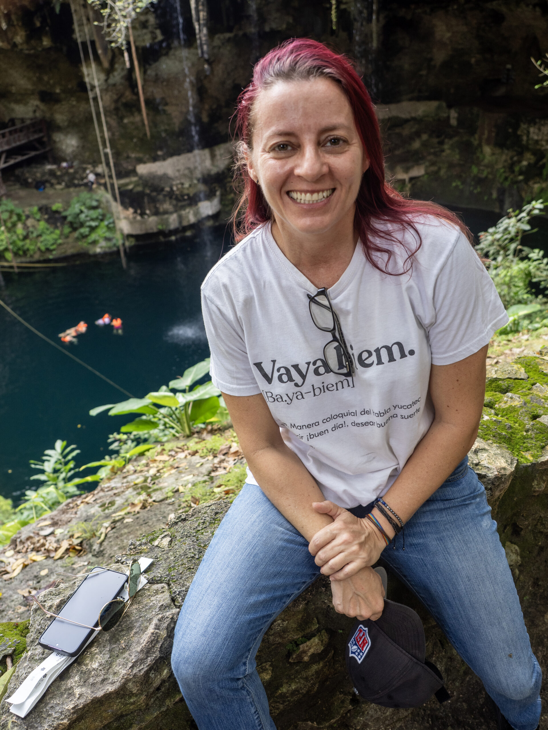 Guiden Ismene tar imot oss i sin hjemby Valladolid, og første stopp er Cenote Zakí – et enormt synkehull som ligger midt i byen.