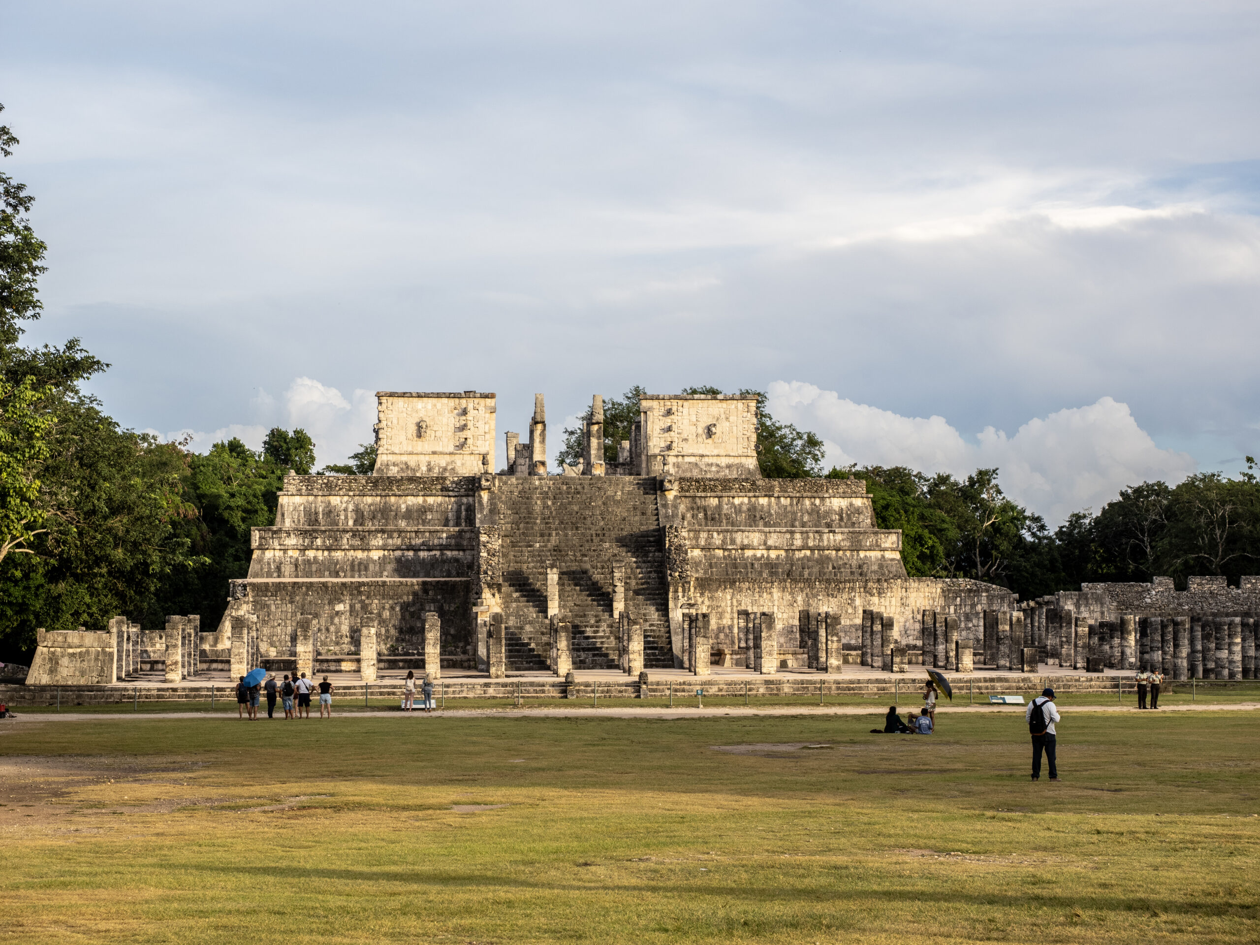 Vi gikk av toget i byen Valladolid, og transporten videre tok ytterligere en snau time. Deretter tok det oss et kvarter å forsere inngangen til Chichén Itzá, og deretter traske det lille stykket langs en grusvei tett besatt med fargerike salgsboder og frem til templene. Og synet som møter oss når vi nå endelig er fremme, er ganske enkelt…