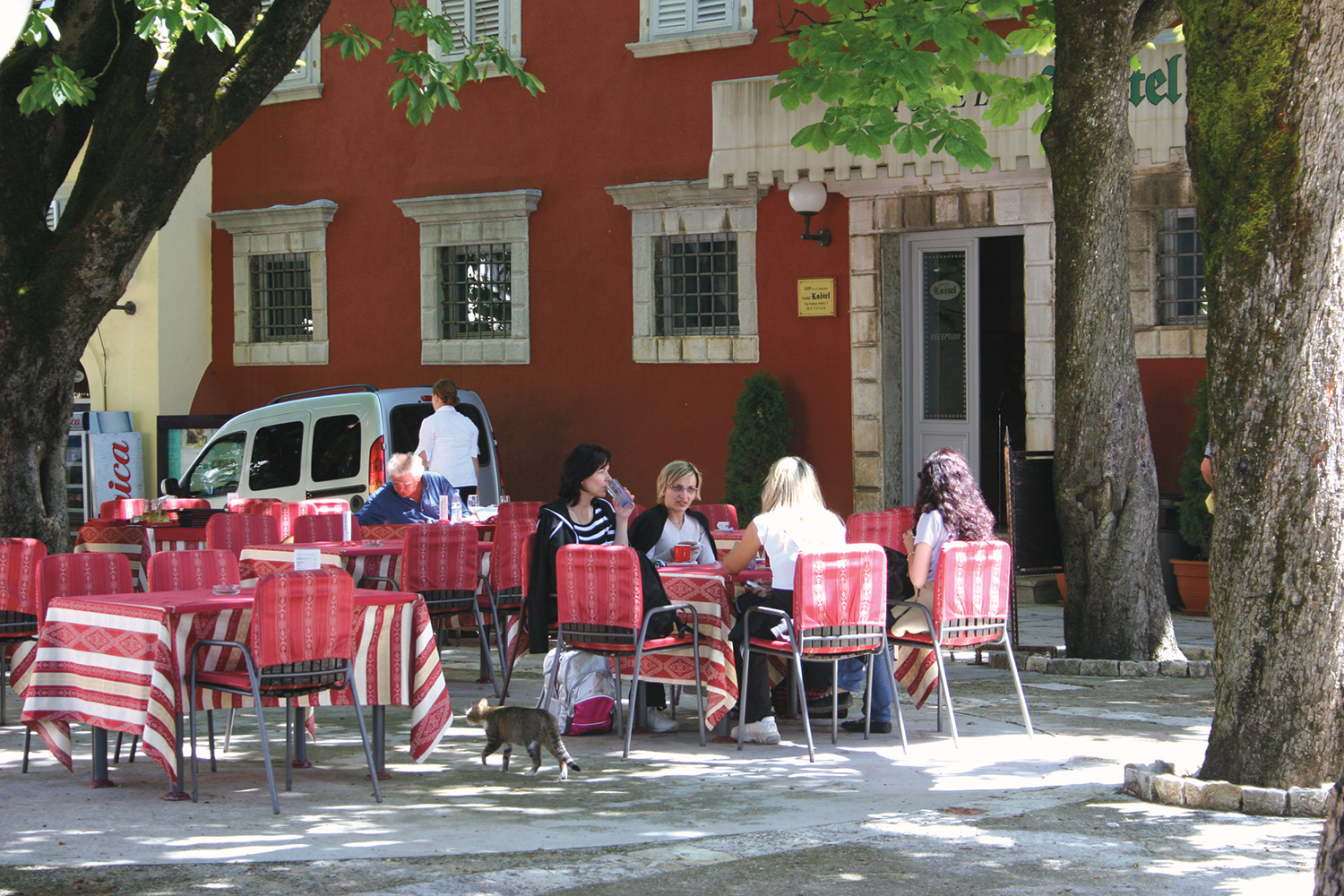 Innlands-Istria består av en rekke åsrygger, bundet sammen av fruktbare flater – dels dyrket mark, men i hovedsak enger og skog. På toppen av annenhver åsrygg av en viss størrelse klamrer det seg fast en liten landsby, gjerne fra Middelalderen – eller eldre. Det er tid for lunsj, og vi svinger av veien ved foten av landsbyen Motovun.
